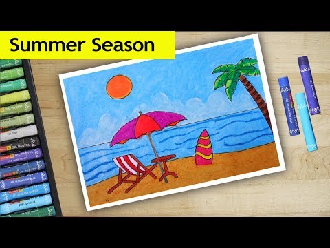 Summer Season Drawing Step by Step - Scenery drawing for beginner - Summer Holiday Pictures Clip Art